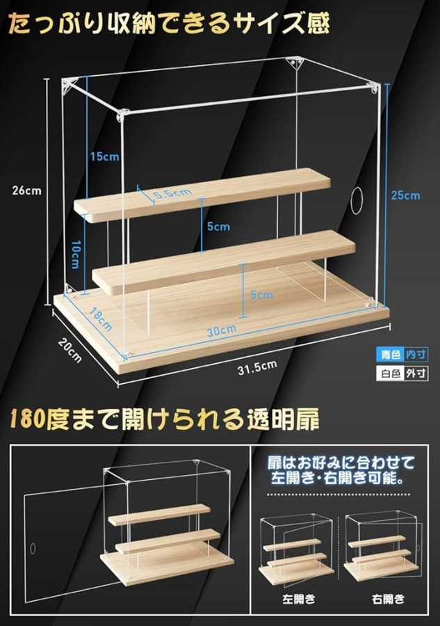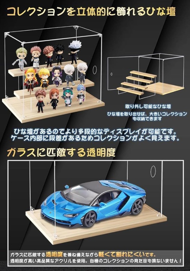 「高透明アクリル」UVカット高透明アクリル素材を採用、コレクションがアクリル越しでもキレイに魅せます。