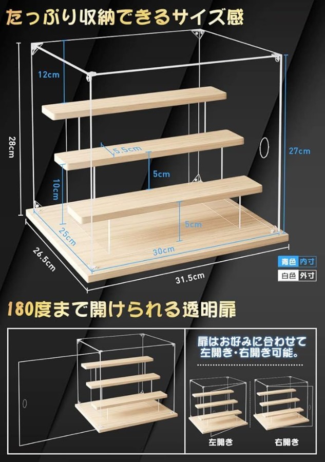 「高透明アクリル」UVカット高透明アクリル素材を採用、コレクションがアクリル越しでもキレイに魅せます。
