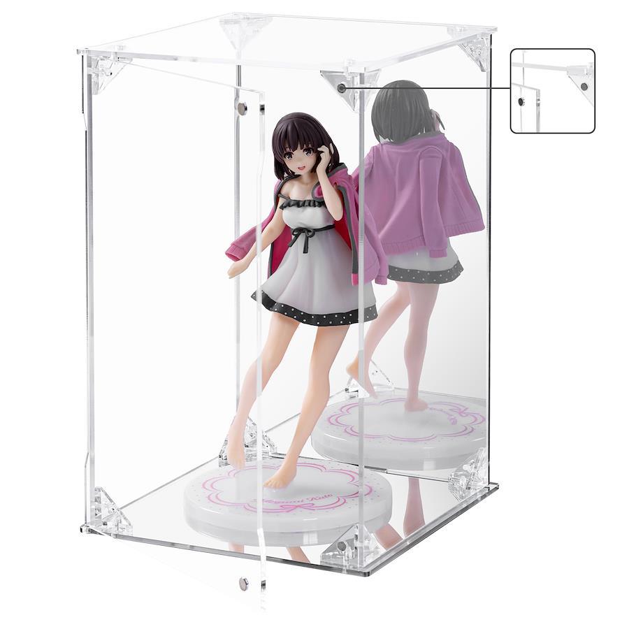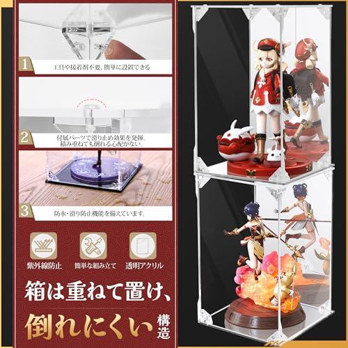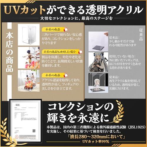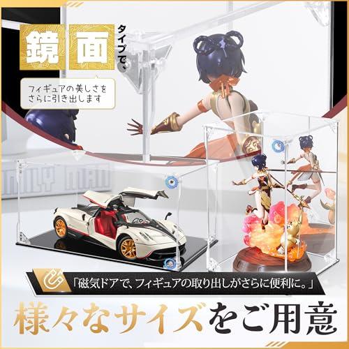 【材質・カラー】材質:アクリル;色:透明アクリル板+ミラー台座+ミラー背板 【サイズ・パッケージ内容】サイズ:(外寸)横幅20×奥行20×高さ30cm;パッケージ内容:台座(ミラー板)、背板(ミラー板)、板 、ドア板(マグネット付き)、天井板;三角連結パーツ(マグネット無し)×6、三角連結パーツ(マグネット付き)×2、固定ピン複数個(余分あり);保護フィルム除去ツール、クロス、手袋 【ご注意】「商品の説明書には滑り止めセットが含まれていると記載されていますが、パッケージ内に見つかりません。」お客様が受け取った説明書は新しいバージョンで、誤って入れられた可能性がありますが、現在の製品には滑り止めセットは含まれておりません。今後の改善で対応予定です。もし必要であれば、お客様は当社のアフターサービスに連絡して、滑り止めセットの補発を依頼することが可能です。 【簡単組み立て・DIY初心者でも安心】本フィギュアケースは日本語の詳細な説明書付きで、DIY初心者でも簡単に組み立て可能。接着剤や工具は不要で、付属の三角コネクターと止めピンで簡単に組み立てられます。アクリル板には保護フィルムが施されていますが、簡単に剥がすことができるフィルム剥がしツールも付属しています。さらに、手袋とクロスを使うことで、指紋やホコリを防ぎ、アクリル面を清潔に保てます。 【頑丈な構造・貴重品守れる】フィギュアケースの三角ジョイント構造により、組み立て後の安定性が向上し、大切なフィギュアやコレクションを安全に収納できます。アクリル板の角は丸みを帯びており、安全に取り扱える設計です。上に積み重ねても安定しており、無料の滑り止めシールにより摩擦力が高まり、倒れにくくなります。耐荷重も十分で、様々なアイテムを飾ることができ、コレクターアイテムを美しく展示できます。 【自由に取り外し・幅広い用途】本ケースはフィギュアのお手入れがしやすい設計です。ホコリがつきにくく、展示中のアイテムを清潔に保つことができます。また、フィギュア以外にも、模型、スニーカー、記念品、人形など、さまざまなアイテムを収納・ディスプレイするのに最適です。どんなアイテムでも美しく飾ることができ、部屋の雰囲気を引き立てます。※製品が届いた時は多少のにおいがすることがありますが、通気性の良い場所にしばらく置いていただくと、においが軽減します。