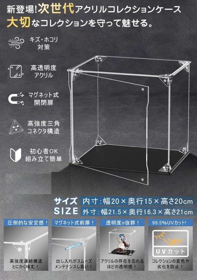 「高強度連結構造」次世代フィギュアケースの登場です。衝撃や揺れでも崩れない三角コネクタ構造により堅牢性を実現。