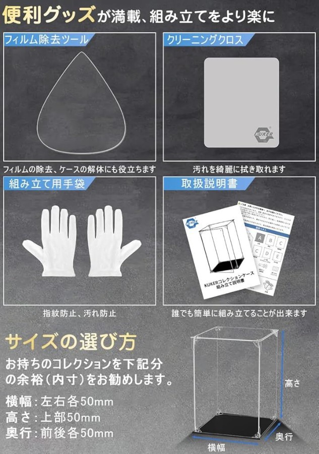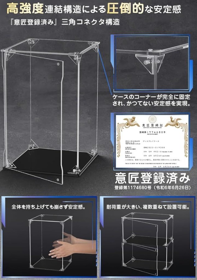 「高強度連結構造」次世代フィギュアケースの登場です。衝撃や揺れでも崩れない三角コネクタ構造により堅牢性を実現。