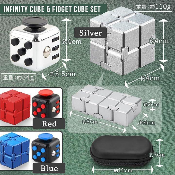 「セット内容」インフィニティキューブx1個、フィジェットキューブx1個、専用ケース(サイズ約11cmx7cm)「カラー展開」ブラック/シルバー/ゴールド/レッド/ブルー*対象年齢6歳以上