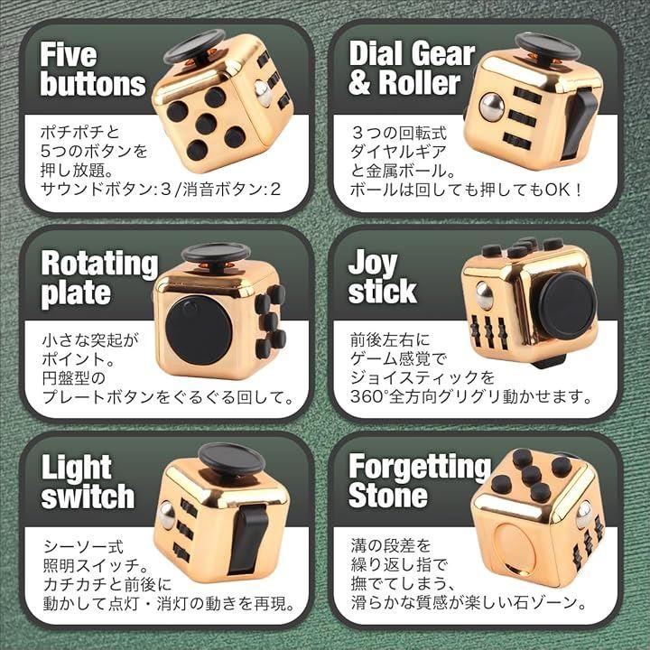 多機能フィジェットキューブ。 6タイプギミックキューブは、スティック、ボタン、スウィッチなど6つのギミックが楽しめます。