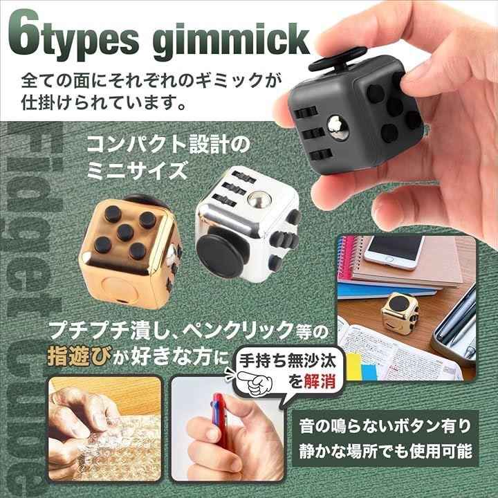 多機能フィジェットキューブ。 6タイプギミックキューブは、スティック、ボタン、スウィッチなど6つのギミックが楽しめます。