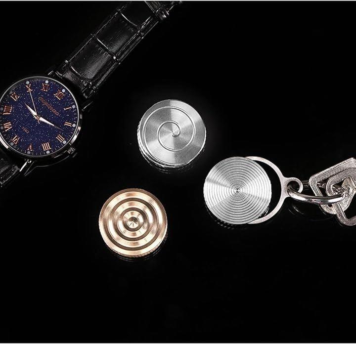 「ポケットサイズの減圧玩具」 直径わずか約3cm・厚さ8mmの超小型サイズながら、手にした瞬間に金属の重厚感と精密な回転バランスを感じられる設計。
