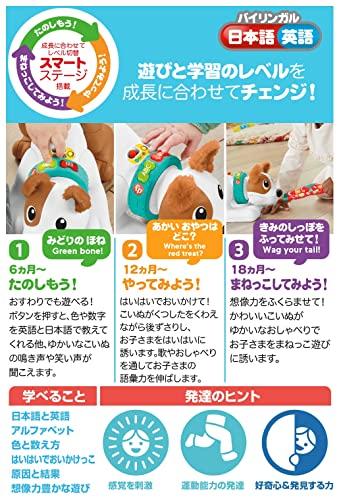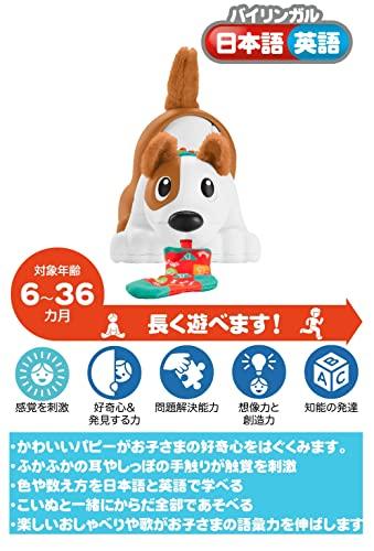 子犬のかわいい鳴き声が聞こえるほか、数字・色・形の名前などのラーニング、ゆかいなおしゃべりや歌フレーズを英語と日本語で収録しています。 【原産国】中国 【対象年齢】6ヶ月~【電池】単3×4(テスト用電池付) 【五感を刺激するおもちゃ】赤ちゃんの脳神経は、生後数カ月から急速に発達し3歳までに80%を遂げることからこの時期に、五感を刺激し脳神経の発達を促すことが、子供の発達において大きな意味があります。