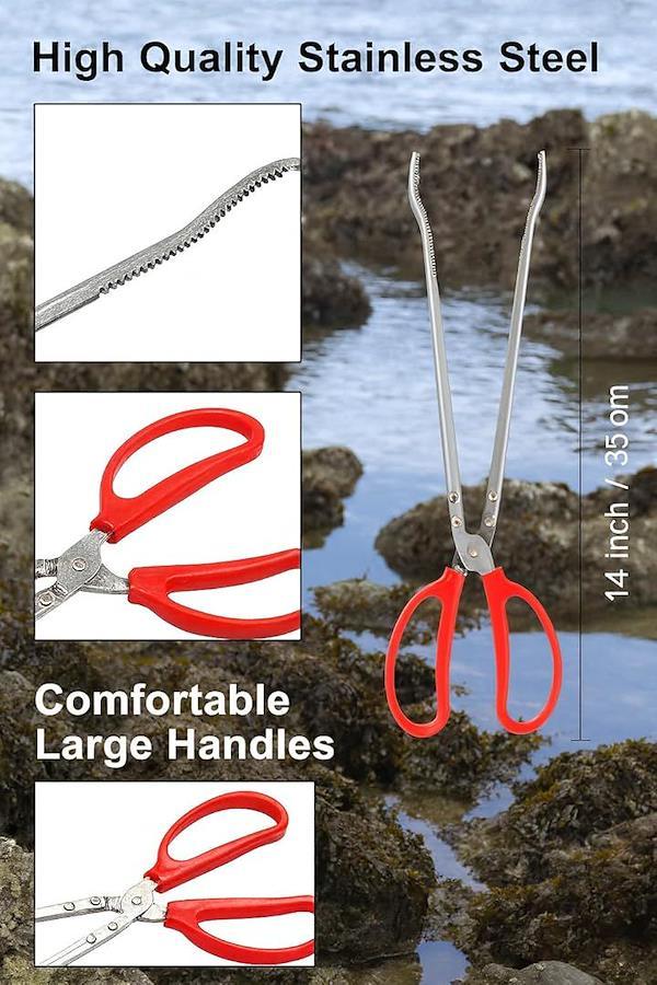 「高耐久ステンレス製で安心の使用感」 全長35cmのフィッシュグリップは、耐久性に優れたステンレス製で、腐食や劣化に強く、海水での使用にも安心です。