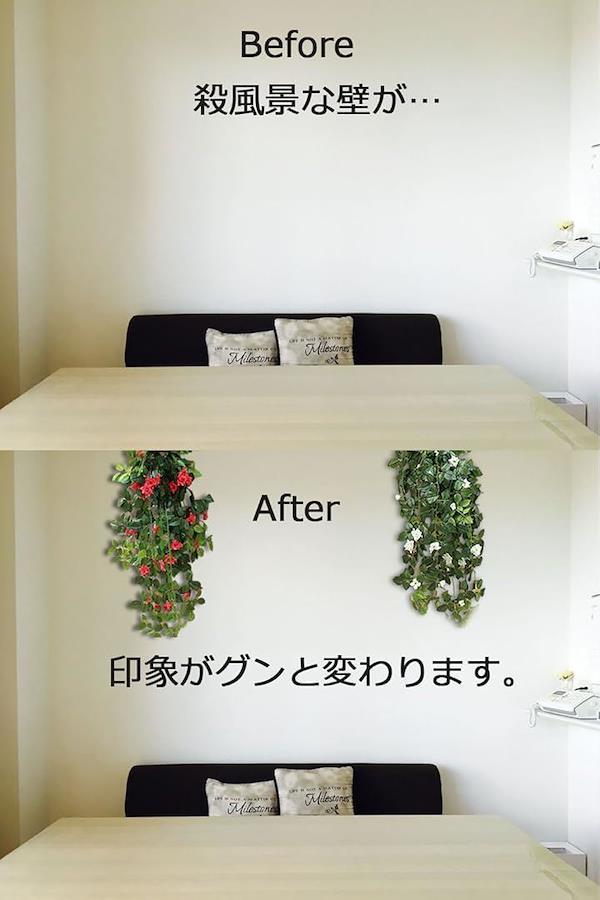 壁にかけたりカーテンテールにはわせたり本物の植物と合わせたりと、幅広いアレンジが可能です。