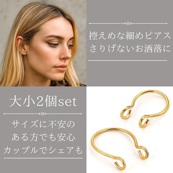 鼻ピやセプタムピアスのような見た目を楽しめる、トレンド重視のアクセサリーリングです。