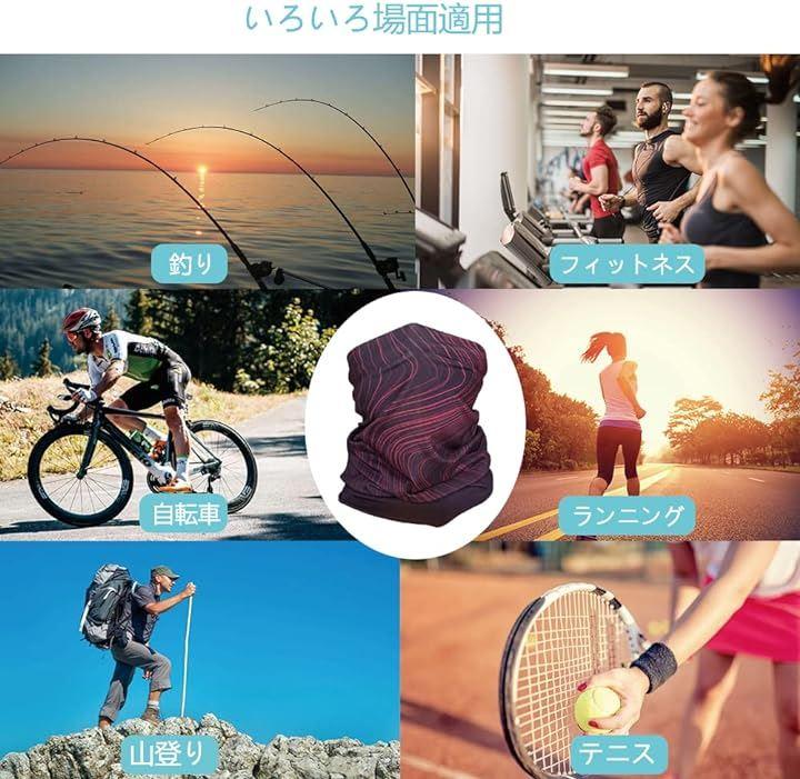 「多機能・多用途」ランニング、自転車、ジョギング、ハイキング、サイクリング、キャンピング、通勤、釣り、徒歩、山登り、狩猟などなさまざまの活動に大活躍できる。また、日焼け止めネックカバーだけでなく、頭巾、マフラー、腕カバーなどとしても利用できます。