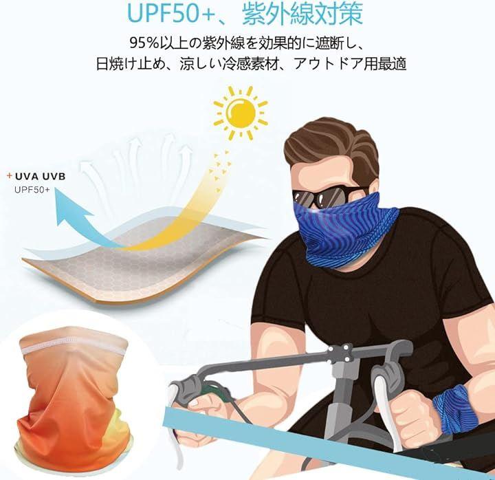 「多機能・多用途」ランニング、自転車、ジョギング、ハイキング、サイクリング、キャンピング、通勤、釣り、徒歩、山登り、狩猟などなさまざまの活動に大活躍できる。また、日焼け止めネックカバーだけでなく、頭巾、マフラー、腕カバーなどとしても利用できます。