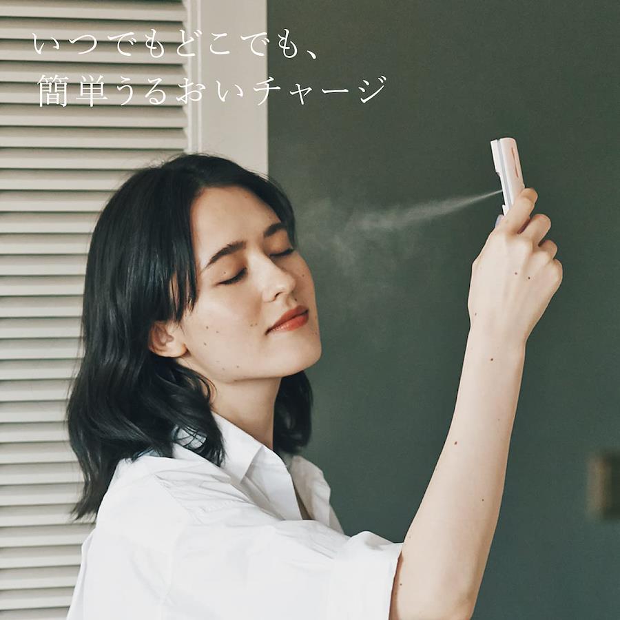 ?【超微粒子ミストで肌を整えながら、気分までリフレッシュ】メイクをしている上からでも肌表面を濡らさず、うるおいチャージ。乾燥が気になる肌や日差しを浴びた肌、暑さ対策と、季節を選ばず一年中使えます。?【いつでもどこでも、簡単うるおいチャージ】持ち運べるハンディミストは1回の充電(約2時間)で、1回約10秒使用した場合でも約20回使用可能。 ※タンク9ml満水の場合?【使いやすいスライド操作】本体カバーをスライドするだけで瞬時にミスト噴射。連続約50秒噴射で自動オフの安心設計。?【衛生的な抗菌タンク】小型の抗菌タンクは本体から取り外し可能。洗って、いつでも清潔キープ。タンクに水を注ぎやすい、便利な水差しボトル付き。?【くり返し使えるUSB充電式】充電約2時間で、最大約40分使用可能。パソコンなどから充電できます。