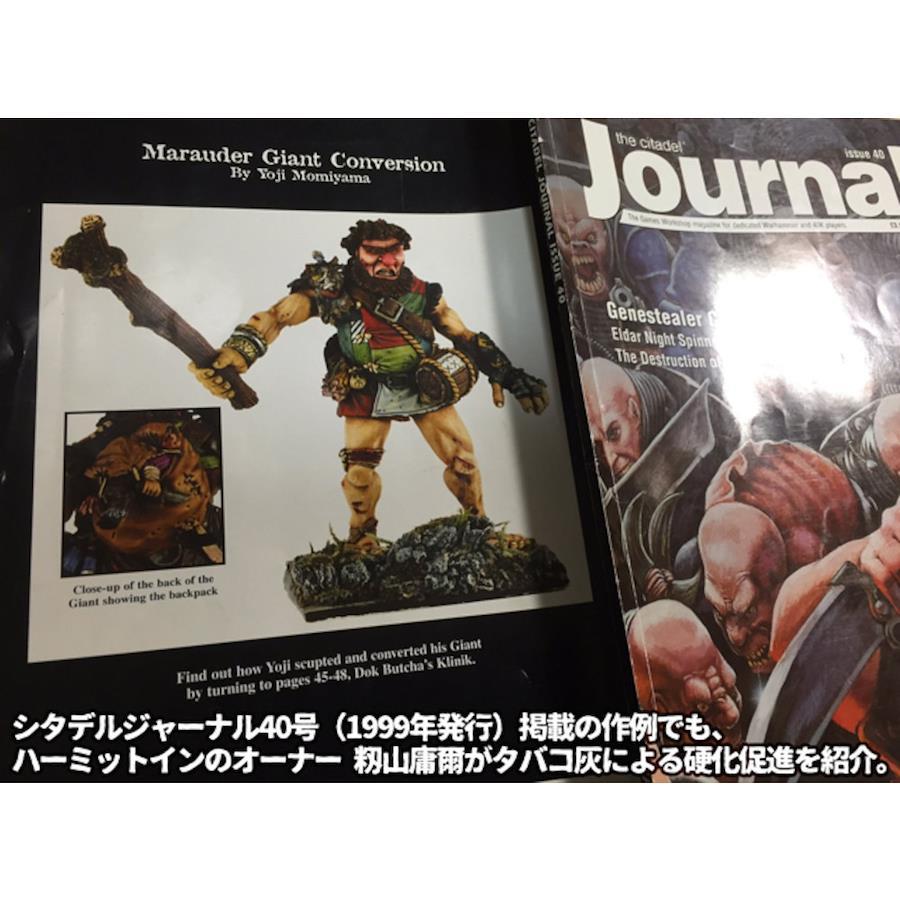 タバコの灰は、古来から瞬間接着剤の硬化促進剤として活用されてきました。高温度ガスバーナーで完全燃焼させたタバコの灰を何度も濾し、70mlのタッパー容器に詰めました。完全燃焼させた上に不純物を可能な限り取り除いているため、タバコ臭はありません。