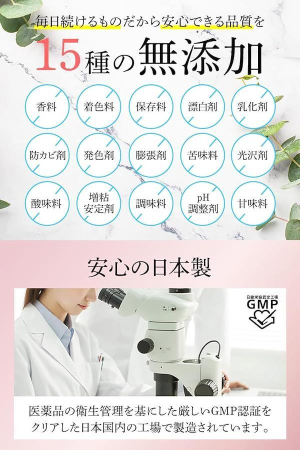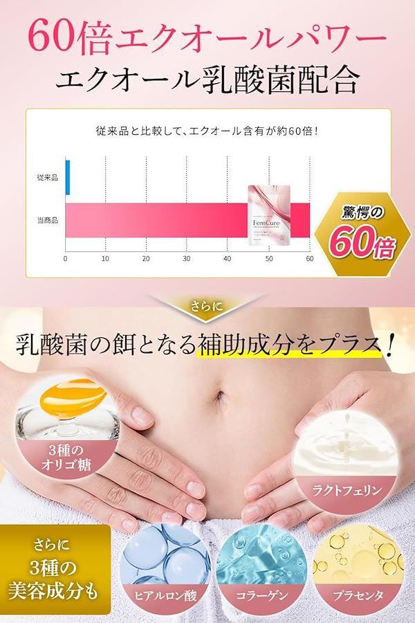 原材料:乳酸菌末(殺菌乳酸菌、デキストリン)(乳成分を含む)(国内製造)、乳酸菌末(デキストリン、乳酸菌(殺菌)、エクオール乳酸菌発酵エキス含有粉末(乳酸菌発酵エキス(黒糖・大豆胚芽培地、乳酸菌)、梅工キス、デキストリン、海洋深層水)、殺菌乳酸菌混合末(デキストリン、乳酸菌混合末、乳糖)(乳成分を含む)、イソマルトオリゴ糖、ガラクトオリゴ糖、フラクトオリゴ糖、馬プラセンタエキス末、コラーゲンペプチド(ゼラチンを含む)/セルロース、HPMC、ステアリン酸力ルシウム、微粒酸化ケイ素、ラクトフェリン(乳由来)、ヒアルロン酸