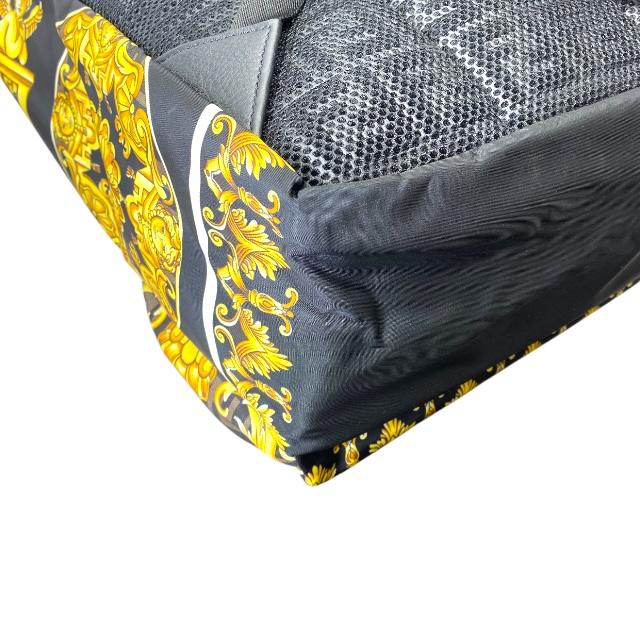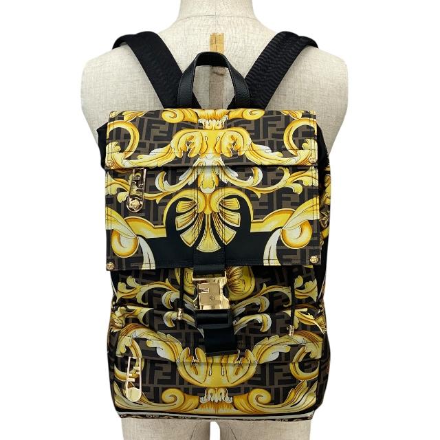 【ブランド】VERSACE FENDI フェンディ コラボ フェンダーチェ【商品名】 バックパック/リュックサック【商品番号】7VZ066【カラー】 ブラック/ゴールド【サイズ】 横:30cm 縦:45cm 奥行:13cm【素材】 ナイロン【付属品】 -【ランク】 Aランク【コメント】 外面:金具小傷(小) 中面:薄スレ(小)【管理番号】 1006b4984o商品情報
