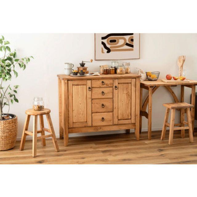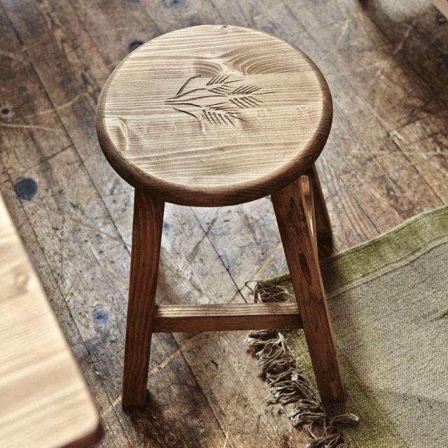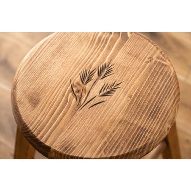 ●オイル仕上げでカントリー調に仕上げたパイン材の天然木スツールあたたかみのあるパインの木目にオイル仕上げを施しているため、木目にオイルが染み込んでより木目の濃淡を際立たせています。