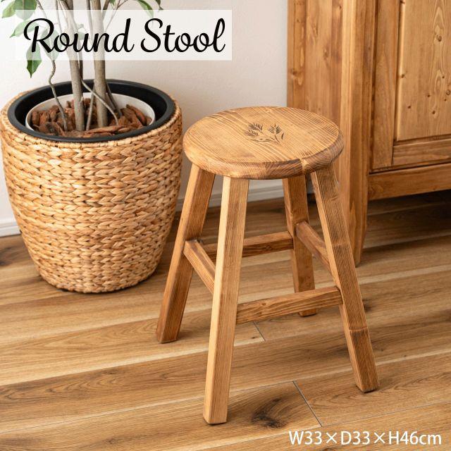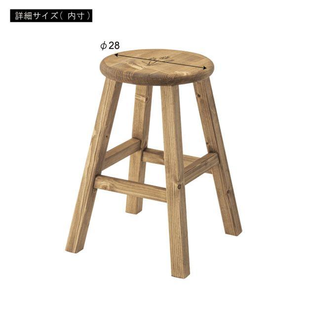 〈製品規格〉商品サイズ:W33×D33×H46(座面φ28)cm重量:2kg静的耐荷重:80kg材質:天然木(パイン)オイル仕上組立:完成品生産国:中国