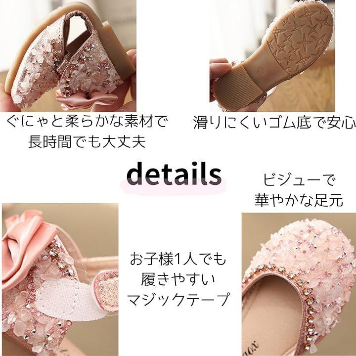 可愛らしいデザイン: キラキラと輝くグリッター素材を使用したサンダルは、ドレスやワンピースにもマッチする上品な仕上がり。