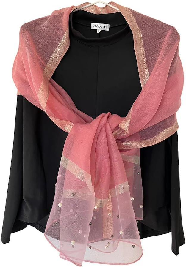 フォーマルブラックや、落ち着いた配色のドレスに羽織るだけで、華やかで上品な印象に。