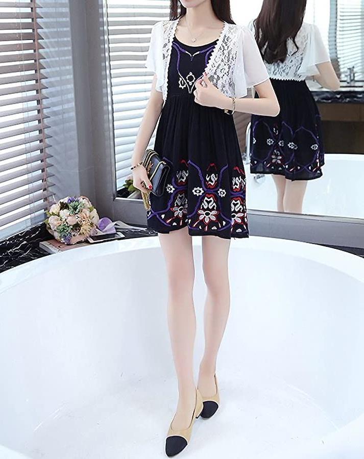 ・ワンピースやドレスとの相性が抜群のショート丈タイプのボレロ。