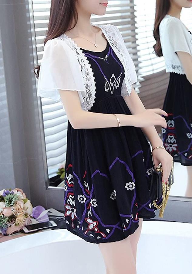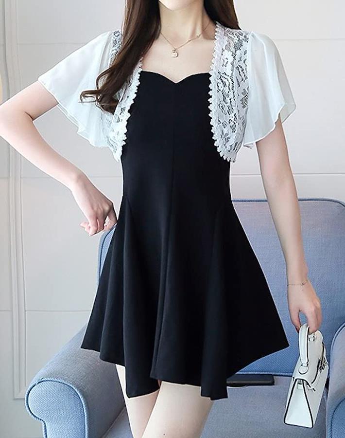 ・ワンピースやドレスとの相性が抜群のショート丈タイプのボレロ。