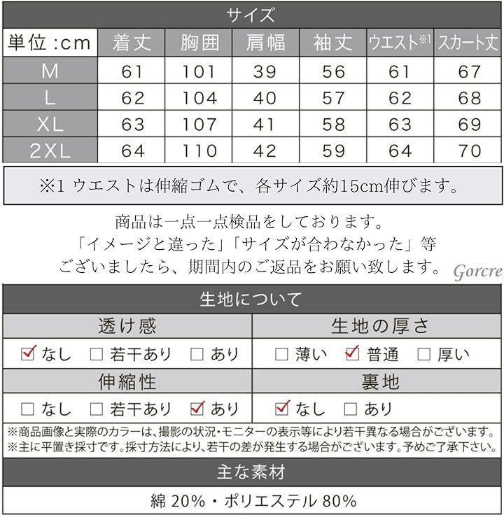 「長時間の着用が楽、ウエスト伸縮。」スカートは、ウエストが伸縮性のゴム仕様で簡単脱着。トップスとスカートが分かれている上、ストレッチ素材のサラサラ生地で長時間の着用も疲れにくい。