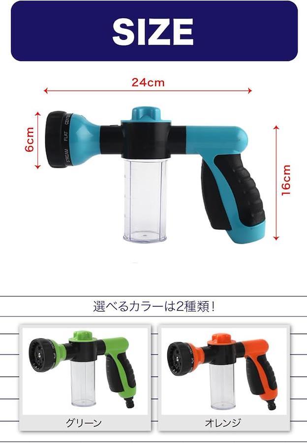 Foam gun, shower head, nozzle, foam, hose, car wash, automobile, watering, screen door, shutter, cleaning, plants, watering