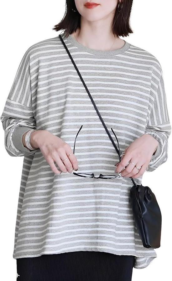 飽きのこないベーシックなデザインの無地、ボーダーカットソー “ちょうど良い”ゆったりシルエットで、1枚で着ても、雰囲気のある着こなしに。