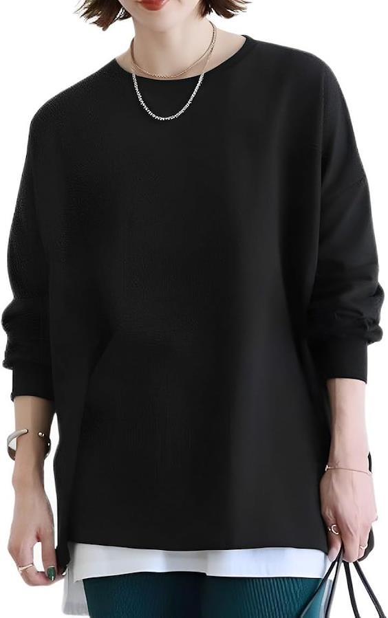 ドロップショルダーとリブ仕様の袖口をたくし上げればシンプルなカットソーもこなれ感のある大人カジュアルスタイルになります バランスよく着こなせる丈なので、ボトムスを選ばずスカートともパンツとも相性抜群。