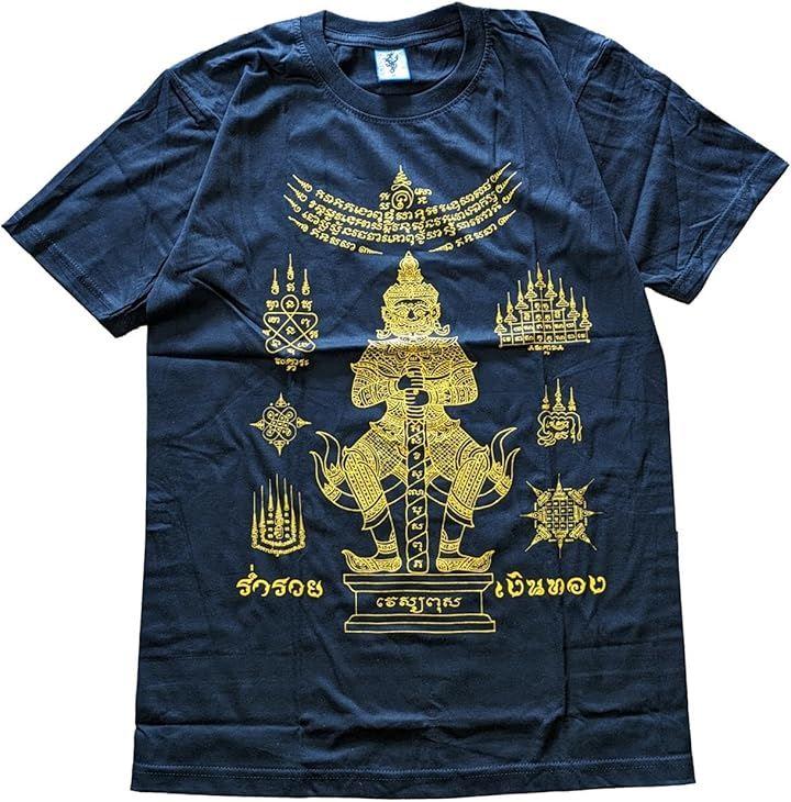 タイ仏教由来の伝統的な刺青のデザイン、サクヤンがプリントされたTシャツです サクヤンとはタイ語でサック(刺青をする)ヤン(護符)、護符を入れるという意味 現地では寺院で僧侶(お坊さん)が行っている伝統のタトゥー(刺青)。