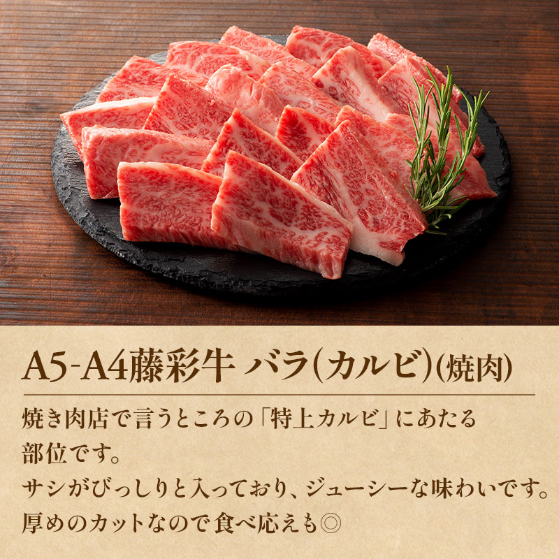 ・A5 A4等級 藤彩牛 バラ(カルビ)焼肉用400g、モモ すき焼き/しゃぶしゃぶ用400g(計800g)