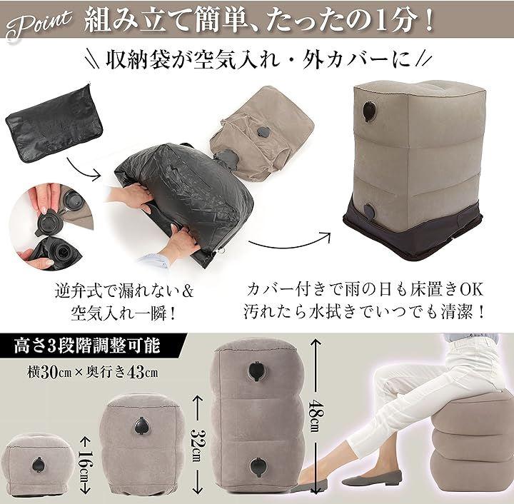 キャンプなどのアウトドアシーンでも、フットレスト、簡易チェア、簡易枕にと幅広い用途でお使いいただけます