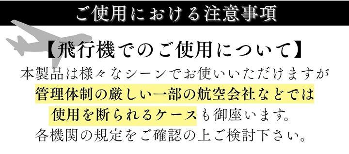 *飛行機や新幹線などで使用される場合は安全の都合上、各管理会社の指示に従って使用してください。