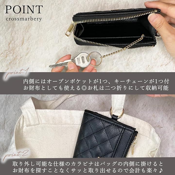 取り外し可能なカラビナはバッグの内側に掛けるとお財布をサッと取り出せるので会計時も。