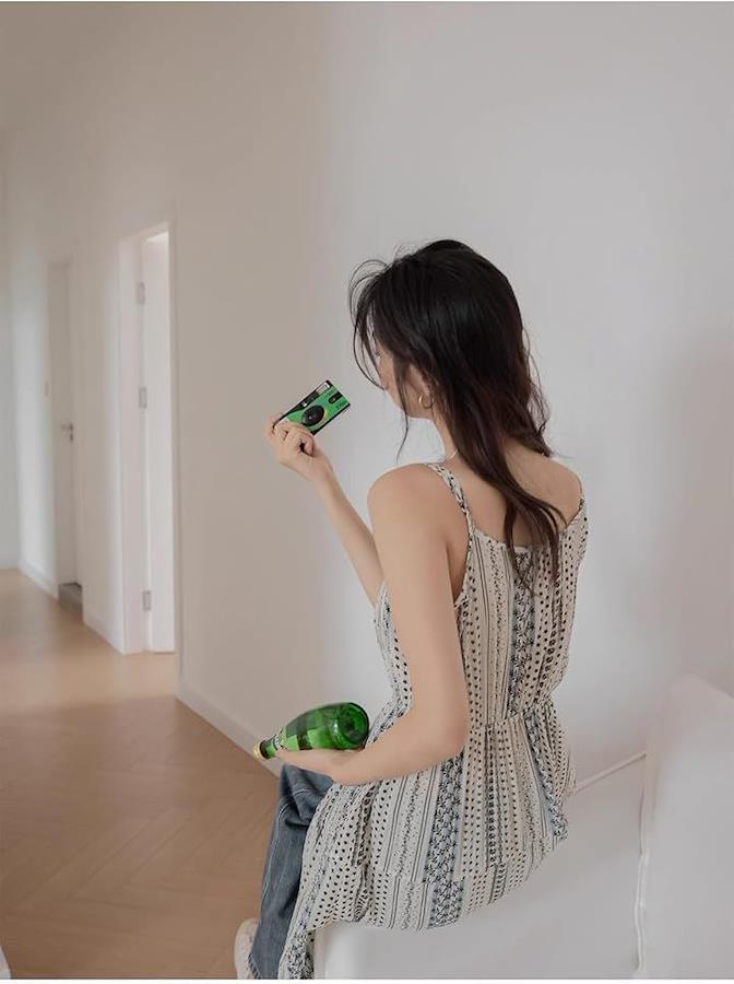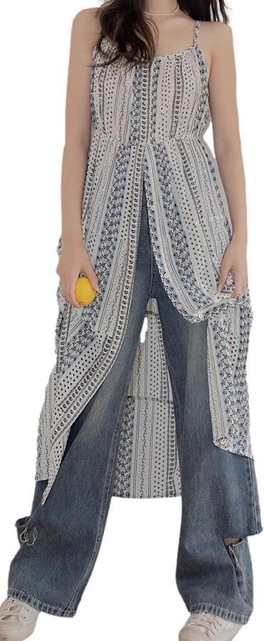 エレガントな花柄とストライプが美しく調和したキャミワンピースです。