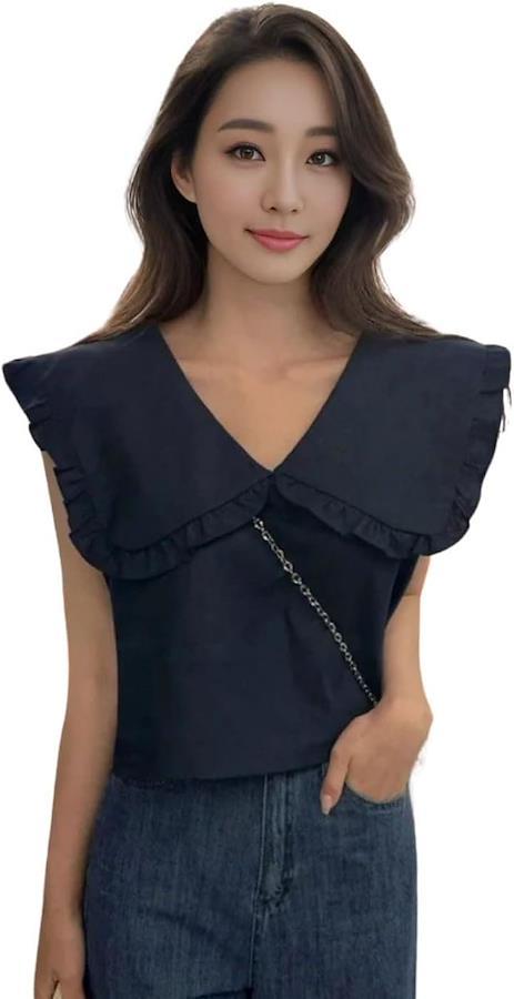 Ruffled Collar Blouse, Cotton Blend, Sleeveless, V-Neck, Spring/Summer, Lightweight, Classic, Elegant, Formal, Simple, BB084