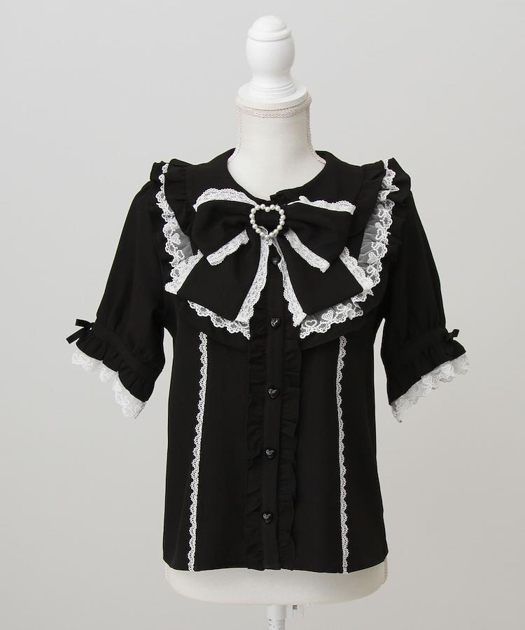 袖からヨークまでレースフリルたっぷりのこてこてでかわいすぎるブラウスです。