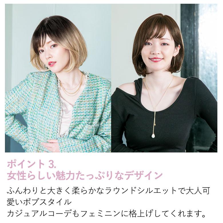 ふんわりと大きく柔らかなラウンドシルエットで大人可愛いボブスタイルは、カジュアルコーデもフェミニンに格上げしてくれます。