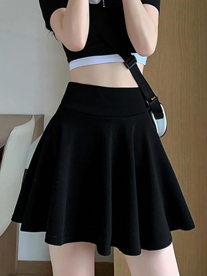 インナースパッツパンツ付き。ふんわりと広がるベーシックなAラインの、きれいめ ミニフレアスカートです。