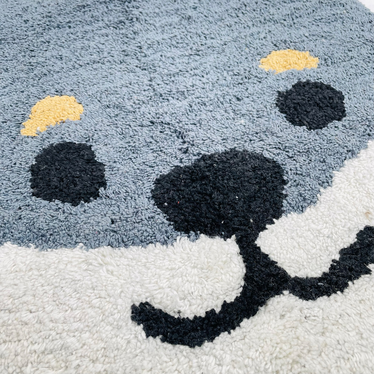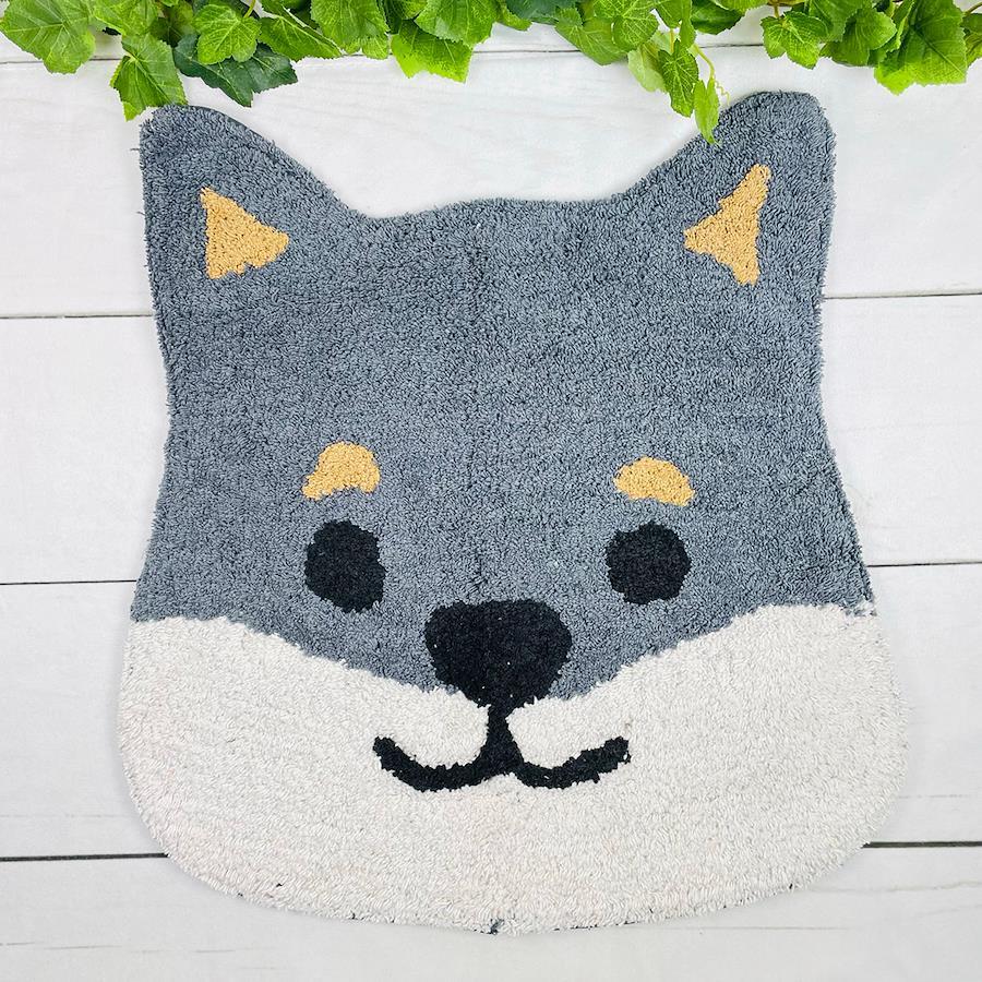 黒柴の黒柳さんの顔をモチーフにした玄関マットです。インド綿を使ったふんわりとした肌触りです。