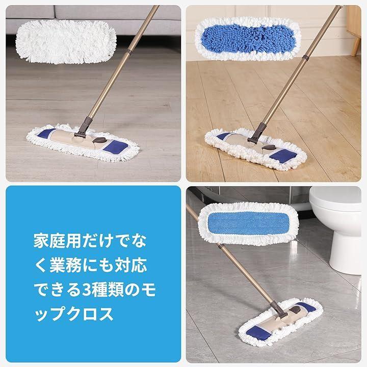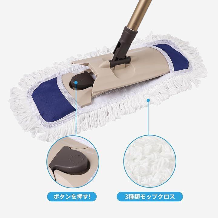 「3種類モップクロス」:クロスにはマイクロファイバー素材を採用され、吸水性や耐摩耗性等にも優れていて床や壁に優しいし、特に木製の床面を傷つけないです。