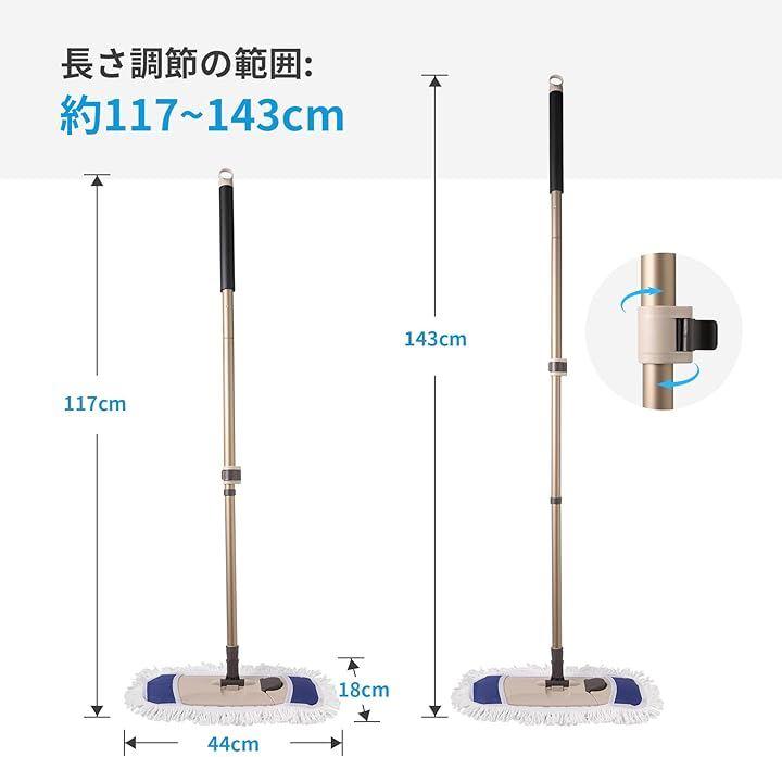 「長さ調節可能」長さ調節可能で、最長143cmまで、腰を大変に曲げる必要なくお気軽に使用できます。