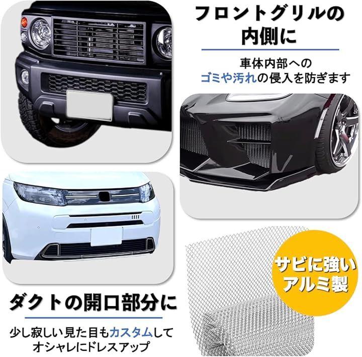 鉄製メッシュに比べて錆びにくく、軽量で扱いやすいため、フロントグリルやエアロパーツなどへの長期的な使用にも適しています。