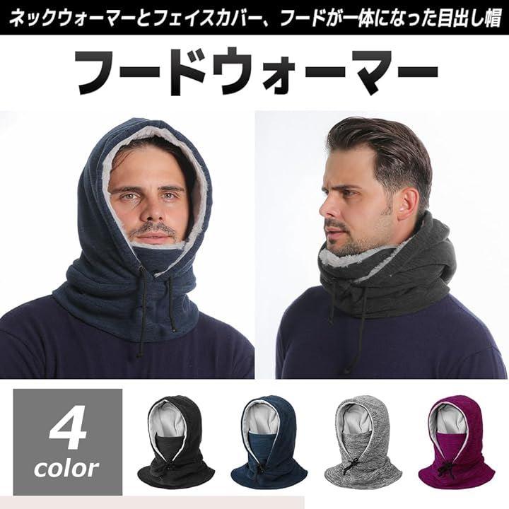 ・頭、顔周り、首元までしっかり覆って暖かいフードウォーマーです。