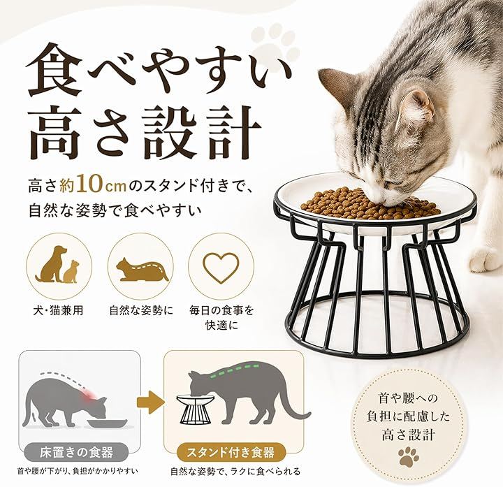 「食べやすい高さ」フードボウル 犬 猫 スタンド付き設計で、床置きより自然な姿勢で食べやすいのが魅力。