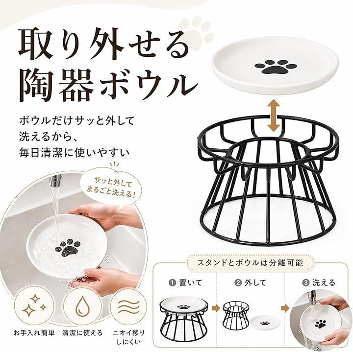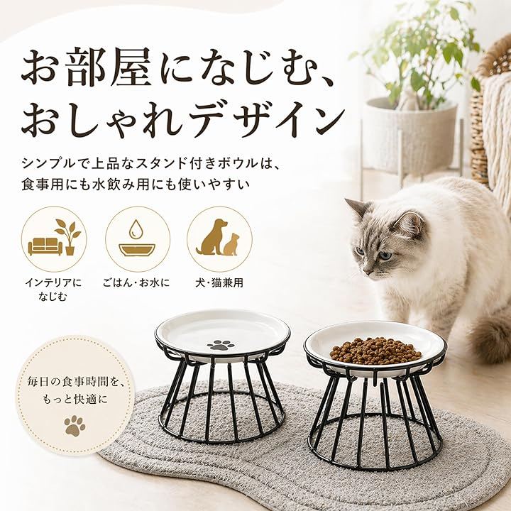 「食べやすい高さ」フードボウル 犬 猫 スタンド付き設計で、床置きより自然な姿勢で食べやすいのが魅力。