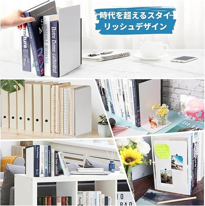 「安定感抜群」このブックエンドは、L型デザインにより本をしっかりと支え、倒れにくくします。