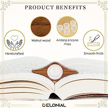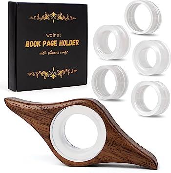 通常1-5営業日で発送:ブックページホルダー 本を開いたままに - 木製ウォールナット親指ブックリーダー 5サイズシリコンリング付き - 読書愛好家アクセサリー - 女性へのギフト - 指オープナー スプレッダー ブックマーク