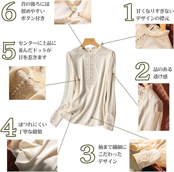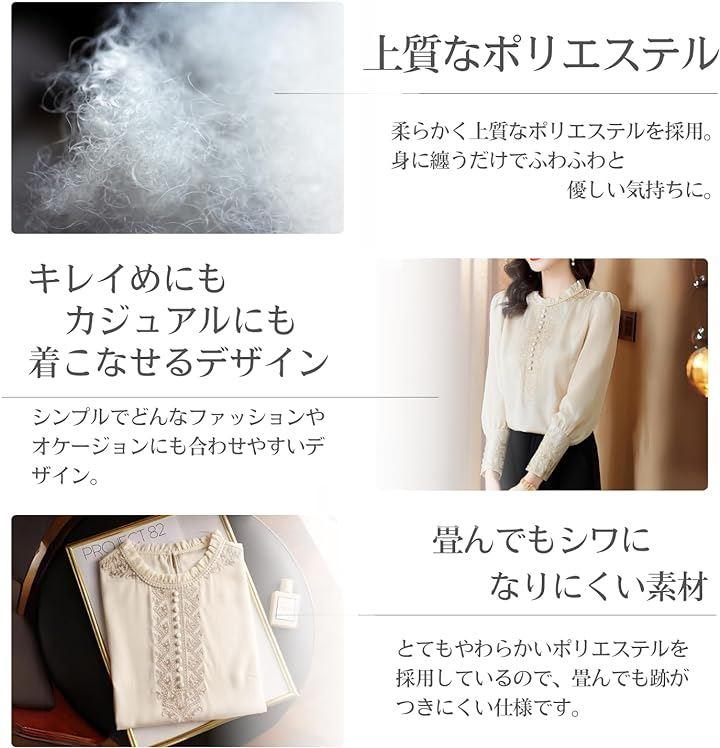 透け感が楽しめる生地感と、襟元のレースで顔周りを華やかに。メイン使いだけでなく、インナー使いやレイヤードスタイルにも合わせやすいので幅広い着方をお楽しみください。