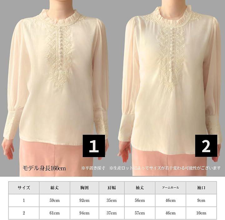 サイズ(CM):「1」総丈59、胸囲92、肩幅35、袖丈56、アームホール46、袖口9「2」総丈61、胸囲94、肩幅37、袖丈57、アームホール46、袖口10ご注意:(平置き)より「約-3cm~+3cm」程度は誤差の許容範囲とさせて頂いております。